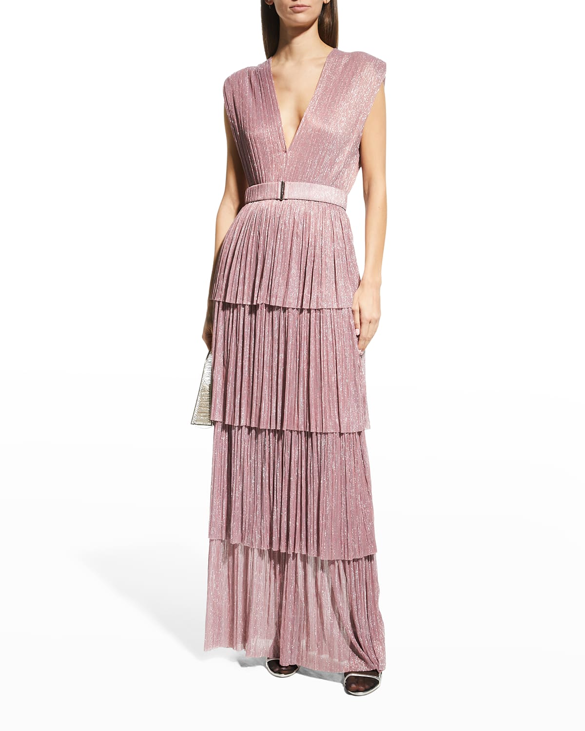 Sabina Musayev Skylar Tiered Plisse Gown In Pinkblue Modesens